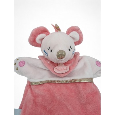 BABY NAT' doudou plat marionnette souris rose Tipioux