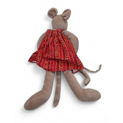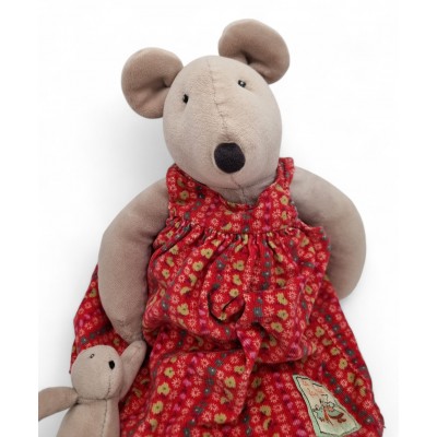 Nini la souris avec sa robe velours rouge et son bébé accroché